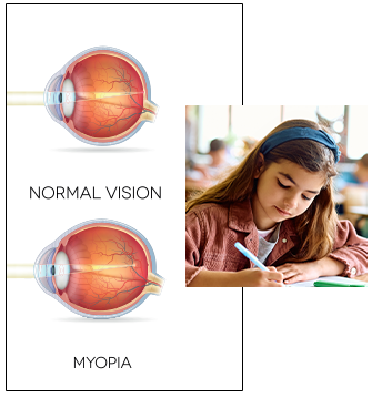 By addressing myopia early, we help children maintain clear distance vision, reduce discomfort, and stay engaged in learning. Regular eye exams and timely myopia control treatments ensure that vision does not become a barrier to academic performance or confidence in the classroom.